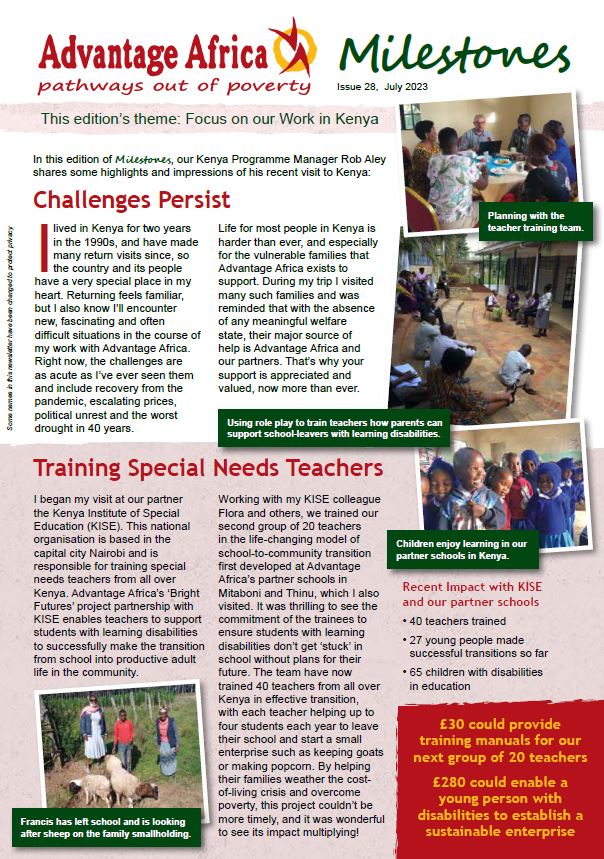 Advantage Africa supports people affected by poverty, disability and HIV to improve their education, health and incomes. Our work helps some of East Africa’s most vulnerable people to overcome prejudice, help themselves and build a better future for their families and communities.